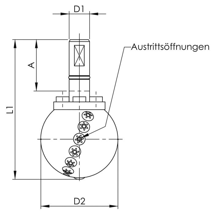 Rengöringsområdet för AMF‑Cleaner är 360° och kan anpassas genom antalet öppna utlopp.
