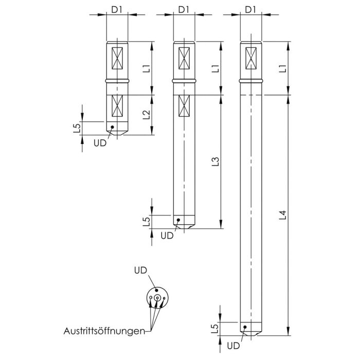 Tack vare formen och de olika rörlängderna lämpar det sig särskilt för rengöring av hål, fickor, underfräsningar och komplexa konturer.