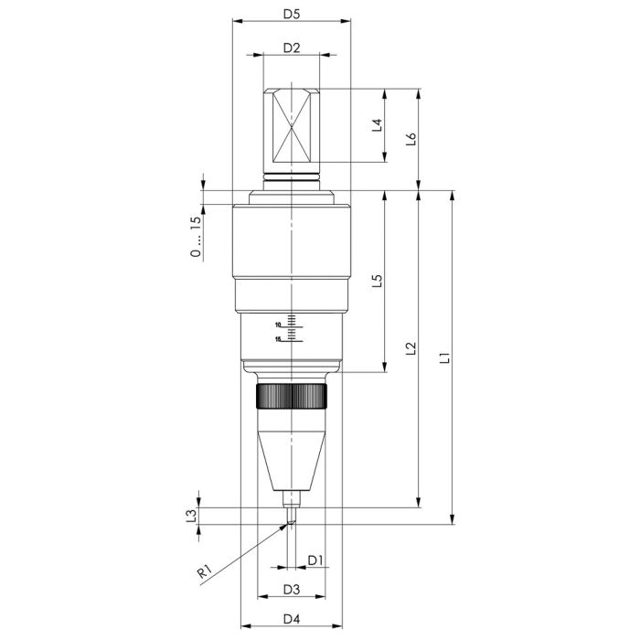 Centrisk märkningsnål används för små tecken och smala linjer.