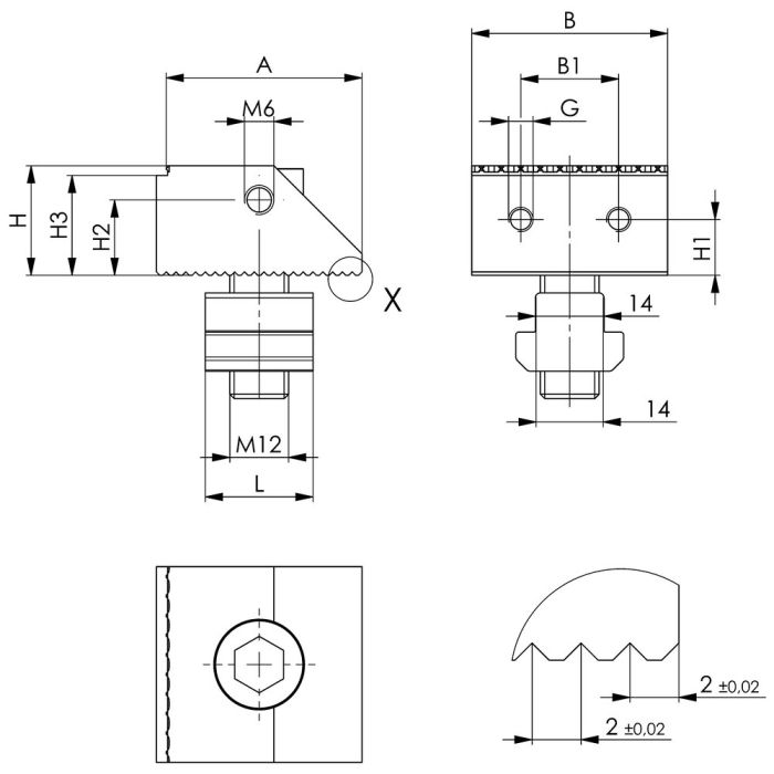 Det fasta stoppet placeras på spännskenan via spännskruven och greppar formpassat i räfflingen.