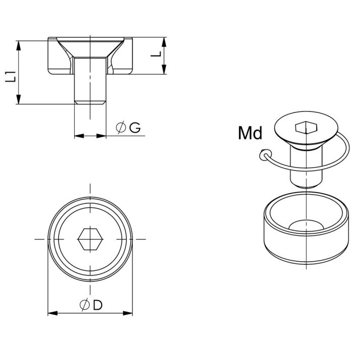 Med skiva av härdat stål och försänkt skruv enligt ISO 10642.