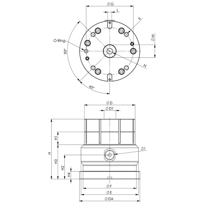 På undersidan finns infästningen för AMF K20 nollpunktsystem samt spår för positionering på AMF:s nollpunktsspännmoduler med indexering.