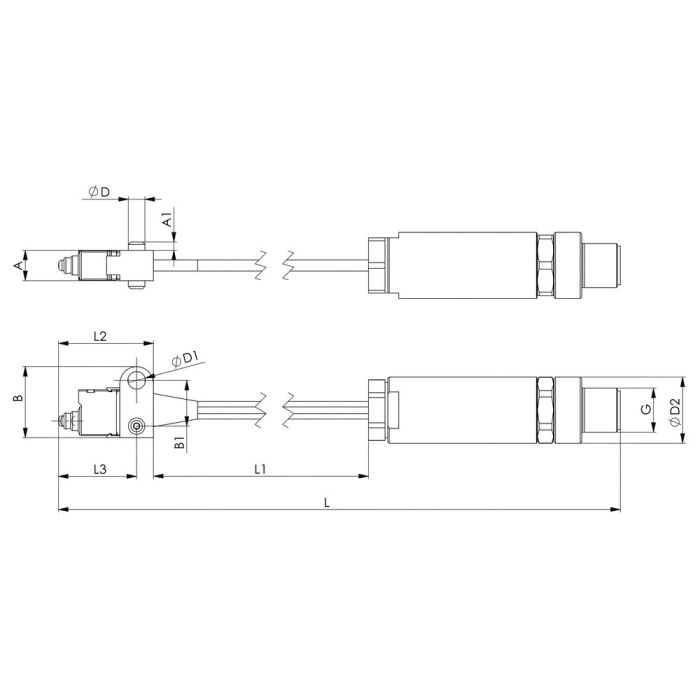 Mikrobrytaren ansluts till sändarenheten via kabel.