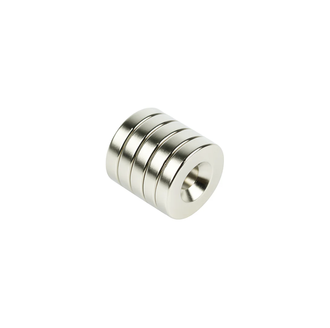 Varje magnet har ett centralt försänkt hål, vilket gör att skruvhuvudet ligger plant med magnetens yta och ger ett snyggt och exakt montage. Tack vare den kompakta ringformen och höga magnetstyrkan lämpar sig dessa magneter väl för fixturer, möbelmontage, skyltning och tekniska konstruktioner i både industriella och privata miljöer.