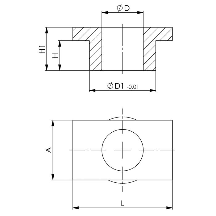Positioneringshylsa för enkel orientering av spännskena med bredd 50 på maskinbordet.