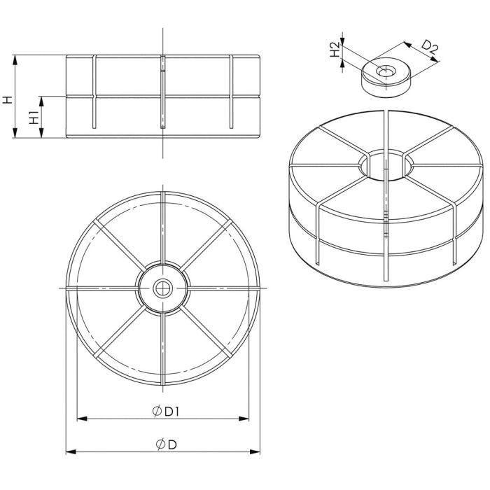 Adaptens ovansida kan fräsas ned till måttet H1 för att möjliggöra nya konturer. Det maximala arbetsstyckets diameter anges i tabellen som D1.
