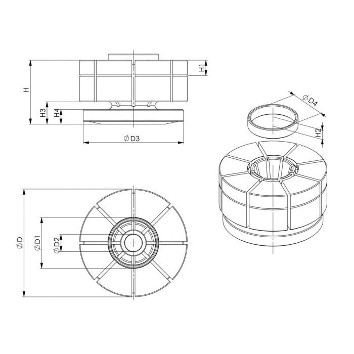 För nya arbetsstyckeskonturer kan spännhylsefästet bearbetas ned till mått D1.